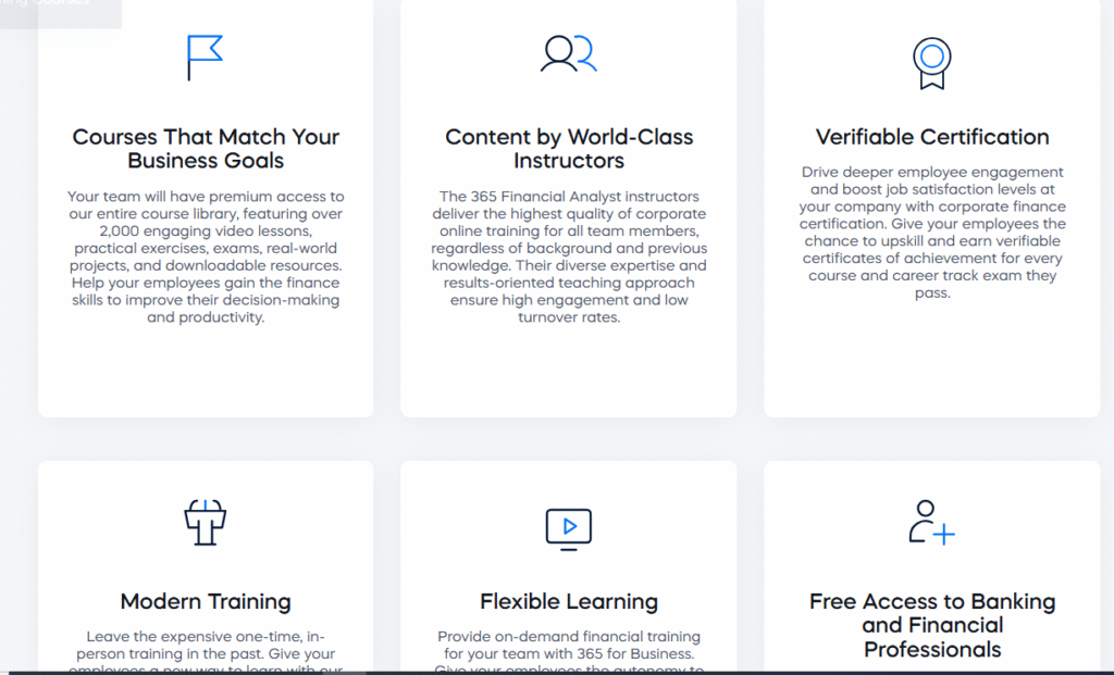 365 Financial Analyst is an online education platform that offers structured learning paths designed for finance and analytics careers. Whether you’re aiming to become a financial analyst, investment banker, or data professional, the platform provides video lessons, practical case studies, interactive quizzes, and certification exams to help you get job-ready.
